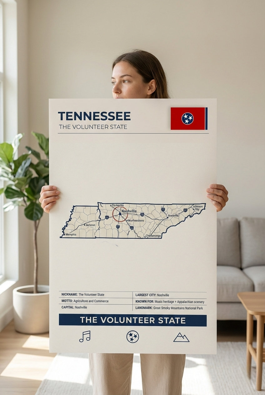 Tennessee Map Poster – Minimal Volunteer State Wall Art